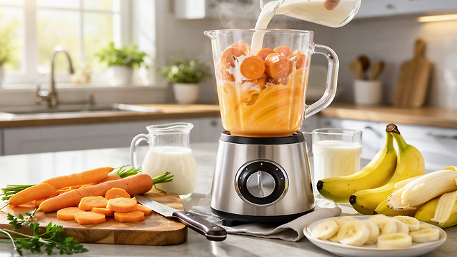 생당근 단독 섭취보다 우유와 함께 갈아 마시는 방식이 영양 활용 측면에서 유리하다. 껍질째 사용하고 짧게 갈아 즉시 섭취하는 것이 핵심이다.