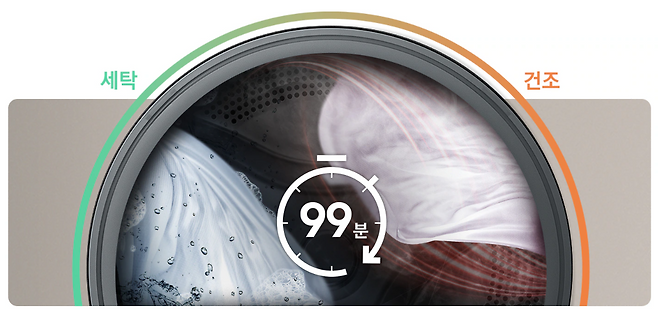 삼성은 세탁부터 건조까지 99분(3kg 기준)에 종료된다고 홍보를 하고 있고, LG의 경우 고객센터로 문의해보니 총 120분정도가 소요된다고 한다.