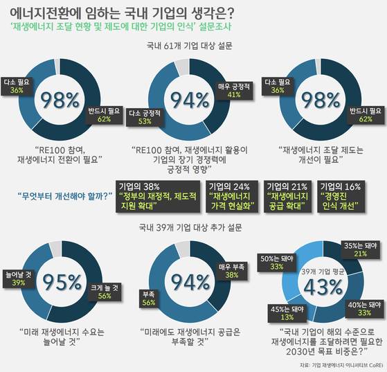 국내 기업 98% "현재 재생에너지 공급 부족..제도 개선해야"