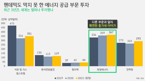 새정부 에너지 정책과 환경 정책 발표를 통해 살펴보는 향후 5년간 한국의 기후·에너지 정책 방향, 마지막 순서입니다. 지난주, 최근 3년간 에너지 공급 부문에 있어 글로벌 투자 현황을 살펴봤습니다. 이러한 돈의 흐름은 곧, 무엇이 '신산업'인지, 어디서 '수출시장'을 찾고, '성장동력'을 얻을 수 있는지 가늠할 수 있는 지표이죠.