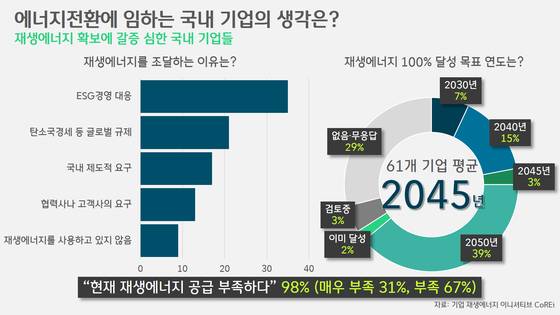국내 기업 평균 '재생에너지 100%' 목표 시점, 2045년