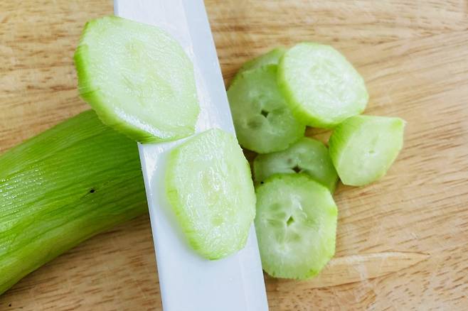 2. 야채가 칼에 달라붙을 때