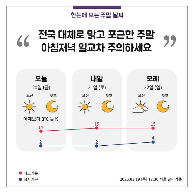 낮 기온은 13℃까지 오르며 10℃ 이상