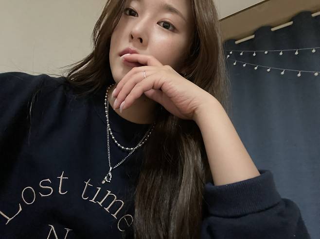 네이비 맨투맨에 악세사리로 포인트를 주었어요