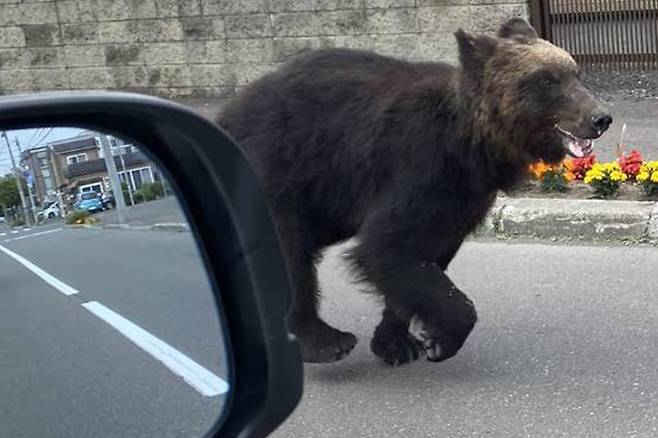홋카이도에서도 도로를 달리던 차량을 따라 야생곰이 무서운 속도로 뛰어오는 모습이 포착됐는데요.