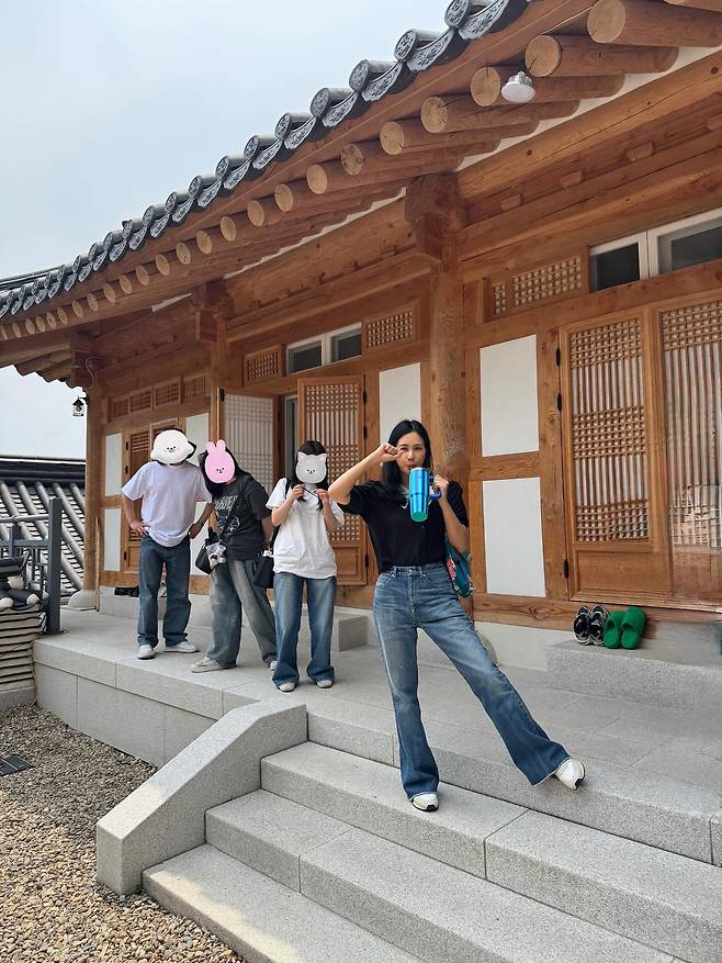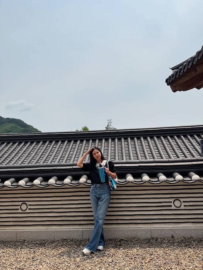 고소영이 전통 한옥을 배경으로 여유로운 데일리룩을 선보였어요.