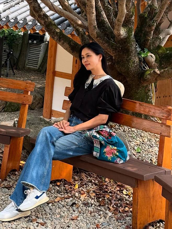 고소영, 블라우스+데님 조합으로 꾸안꾸 완성