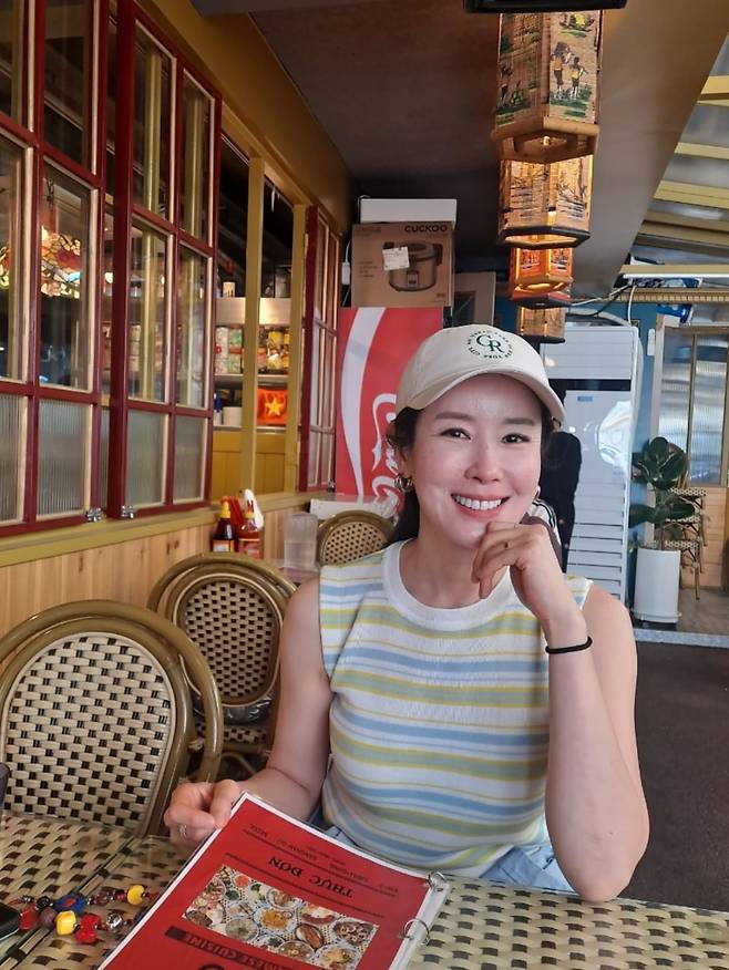 레트로 분위기의 카페에서 이태란이 스트라이프 민소매 톱과 캡 모자를 활용한 경쾌한 여름 룩을 연출하고 있다. 노란색과 흰색의 스트라이프 패턴은 화창한 계절감을 살리면서도 복고풍 인테리어와 절묘하게 어울린다. 캐주얼한 모자와 심플한 액세서리로 포인트를 준 이 스타일은 여유로운 일상 속에서도 패션 센스를 놓치지 않는 배우의 감각을 엿볼 수 있게 한다. 특히 메뉴판을 보며 미소 짓는 모습에서 자연스러운 매력이 더욱 빛나고 있다.