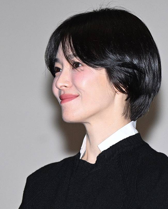 송혜교는 턱선을 가볍게 감싸는 길이를 택했다. 딱 그 선에서 멈춘 머리가 얼굴을 더 또렷하게 보이게 만들었고, 어깨선과 자연스럽게 이어지는 의상은 전체 인상을 안정감 있게 잡아줬다.