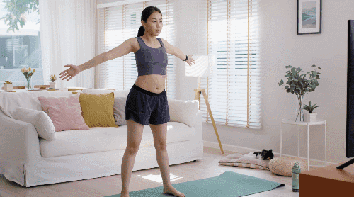 효과 - 허벅지와 엉덩이 근육을 고르게 사용해 하체 근력 강화에 도움이 됩니다. 팔 동작이 함께 들어가 상체와 하체의 협응력이 향상됩니다.