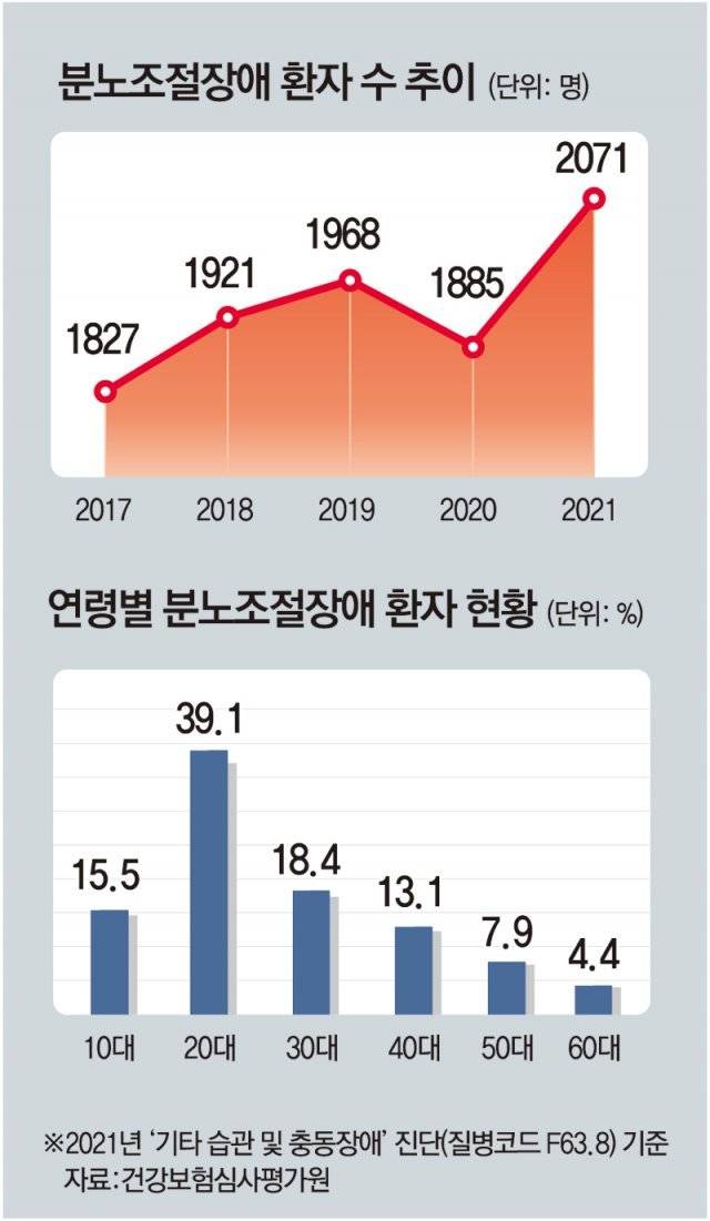 20대 남성은 전체 35.2%로 가장 많았다. 홍진표 삼성서울병원 정신건강의학과 교수는 “10대에 감정 조절 능력을 키우지 못한 남성들이 성인이 돼 화를 참지 못하고 행동으로 표출하는 것”이라며 “군대 내 폭력 문제는 이런 연장선에서 일어난다”고 설명했다.
