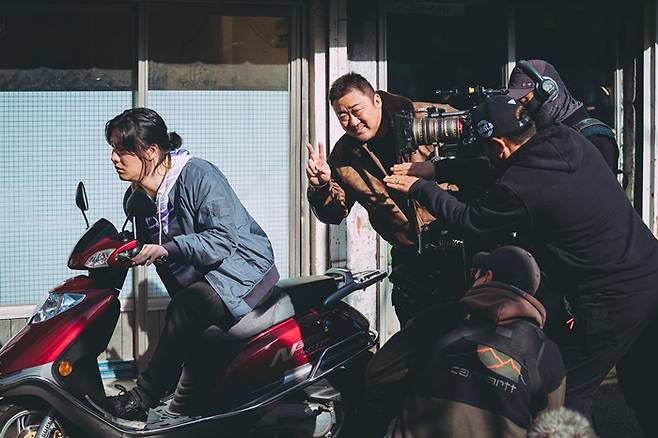 영화에서 악당을 맨주먹으로 응징하는 마석도 형사는 사실 촬영 현장에서 누구보다 '귀여운' 모습을 보인다. 마동석이 지닌 여러 별명 중 하나인 '마요미'가 떠오르는 모습이다.