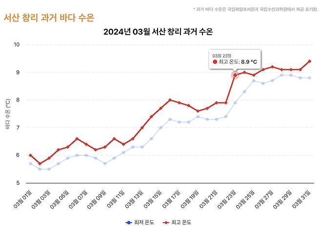 수온을 살펴보았습니다.