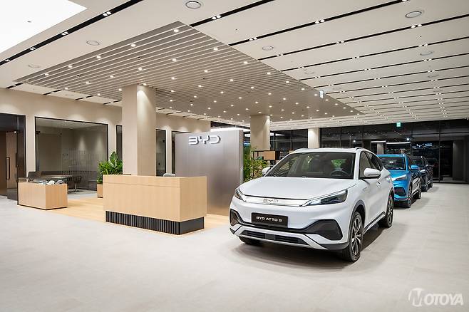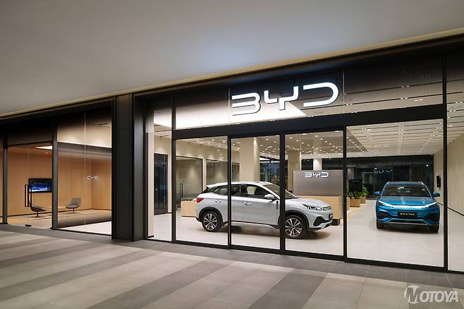 지난 16일 국내 런칭한 BYD의 최대 딜러로 선정된 'DT 네트웍스'는 17일 수원 전시장에서 BYD 본사 및 BYD 코리아 임직원 및 딜러사 대표단들이 모두 참석한 가운데 국내 전시장 중 첫번째로 전시장 오픈식을 진행했다. 류쉐량 BYD 아시아태평양 자동차 영업사업부 총경리 축사로 시작된 이 날 행사는 BYD의 대표 모델인 소형 전기 SUV 아토3(ATTO3)가 전시되며 이목을 끌었다. 아토3는 1회 충전으로 상온에서 복합 기준 321km의 주행 거리에 안전성과 세련된 디자인을 갖추고 있으며 BYD가 국내에서 첫 번째로 선보이는 모델이다.