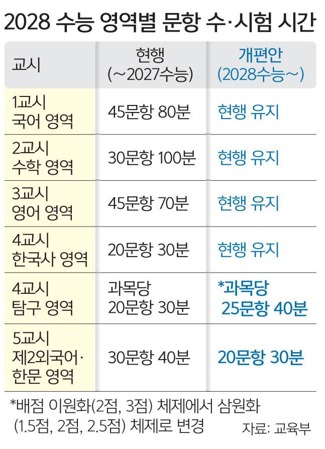 2028학년도 수능, 탐구과목 문항수·시험시간 ↑