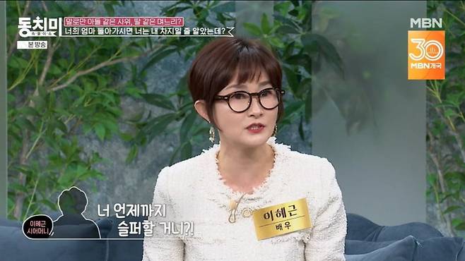 1986년 드라마 ‘꾸러기’로 데뷔한 배우 이혜근은 2003년 사업가 남편과 결혼해 슬하에 두 아들을 두고 있다. 그녀는 과거에도 MBN '속풀이쇼 동치미'를 통해 시어머니와의 갈등을 공개한 바 있다.