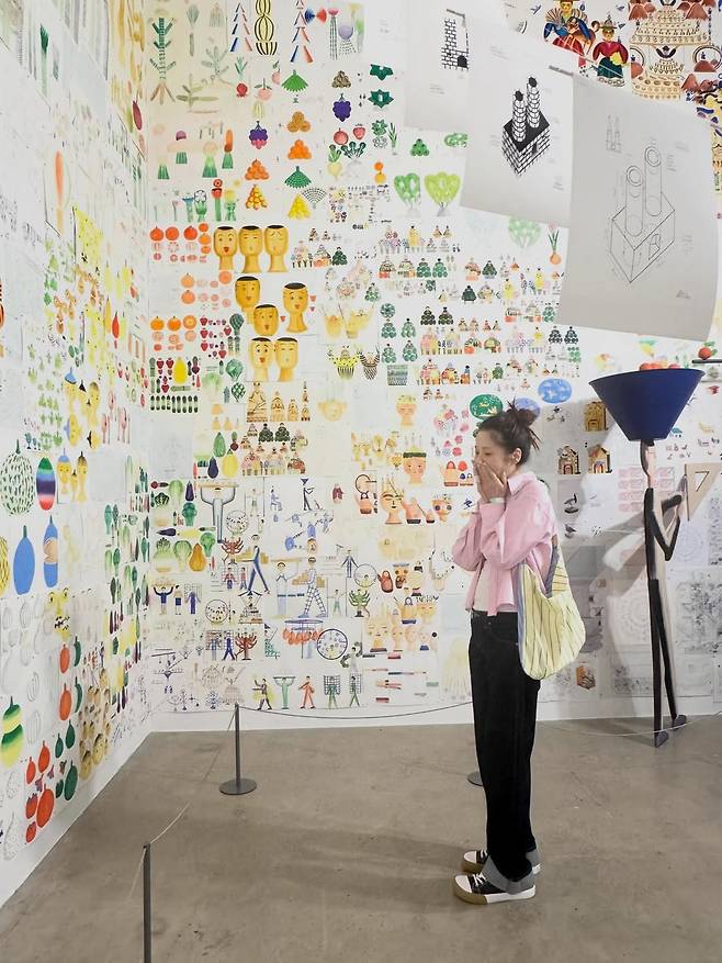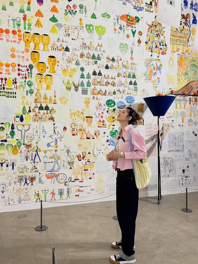 전시장을 찾은 모습, 카페에서 시간을 보내는 장면까지전체가 이어지면서 하나의 스타일처럼 보인다.