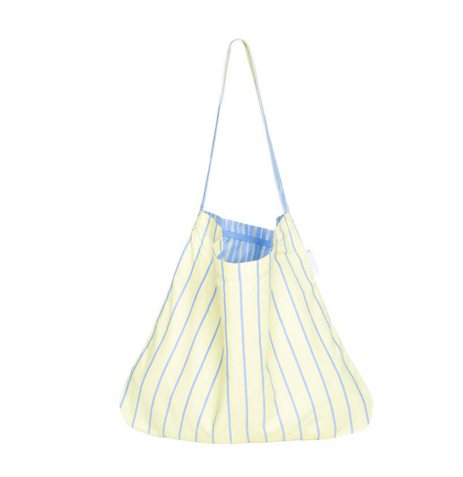 노란빛이 도는 블루 스트라이프 패턴의 가방, 툭 걸쳐도 모양이 자연스럽게 떨어지는 형태인데알고 보니 가격이 3만원대였다.