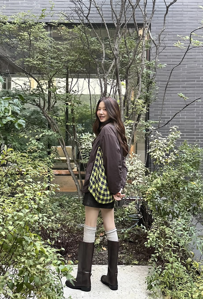 하의는 과하게 핏을 잡지 않은 데님이라움직임이 그대로 살아난다.