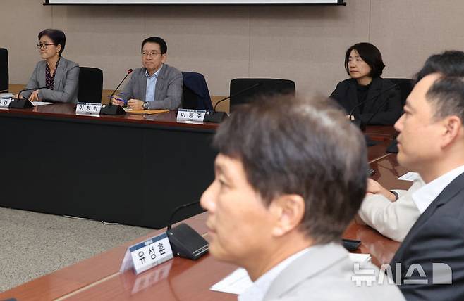 [서울=뉴시스] 김명원 기자 = 이정희 배달플랫폼-입점업체 상생협의체 위원장이 7일 서울 종로구 정부서울청사 별관에서 열린 배달플랫폼-입점업체 상생협의체 제11차 회의에 참석해 논의를 진행하고 있다. 2024.11.07. kmx1105@newsis.com