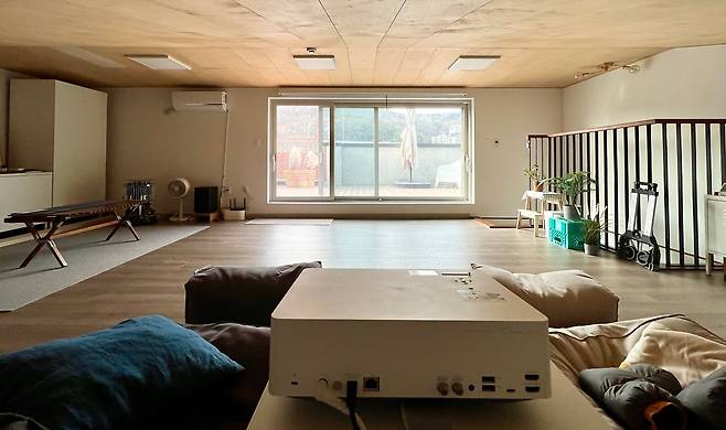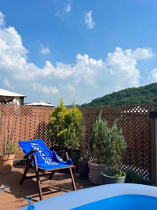 이 집의 장점을 몇 가지 소개하자면, 베란다 뒤에 산이 있어서 초록 뷰를 항상 볼 수 있고 테라스에서 캠핑과 물놀이를 즐길 수 있다는 거예요. 또 집에서 보낼 수 있는 시간이 다양해진 덕분에 바깥으로 나가는 횟수도 많이 줄었습니다. 예전에는 집안에 있다가도 카페로 나갔는데, 지금은 집에서 내리는 커피를 제일 좋아하게 되었고요.