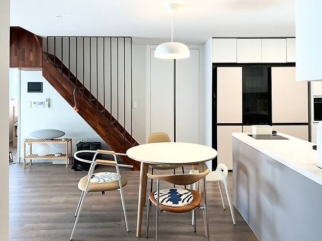 이 집을 선택한 건 보너스 공간 복층과 테라스 때문이었어요. 아파트에는 잘 없는 구조에서 매력을 느꼈습니다. 또 캠핑을 좋아하는 저희로서는 더 큰 메리트로 다가왔고요.