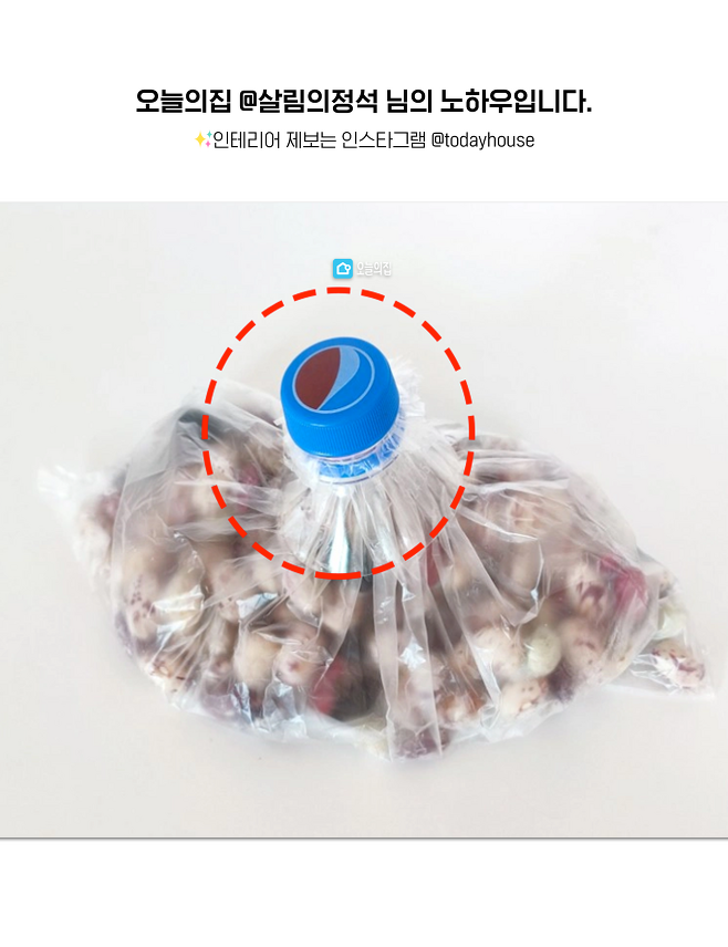 따로 소분을 하자니 마땅치 않고 그냥 이렇게 밀봉 클립이나 집게를 활용해서 많이 사용하실 텐데, 이럴 때 페트병 뚜껑을 활용하면 쉽게 밀봉이 가능하고 요리 시 편리하게 재료를 덜어 쓸 수 있답니다.