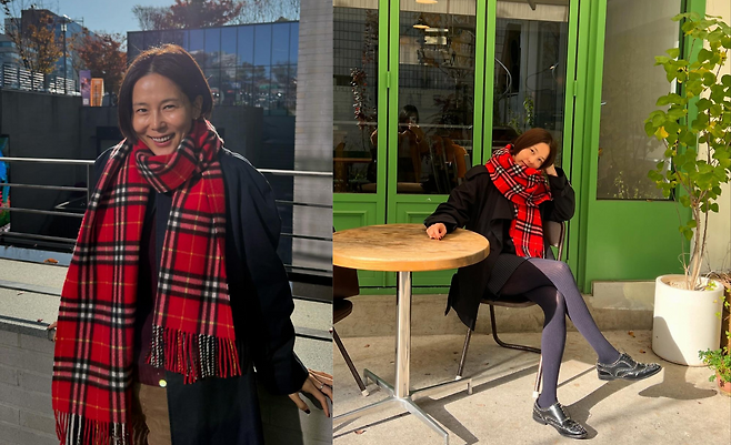 공개 된 사진 속 김나영은 블랙 컬러의 트렌치 코트를 입고 브라운 컬러의 코듀로이 팬츠를 입었다. 빨간 체크 머플러를 두르고 겨울 분위기를 물씬 풍기는 스타일링을 선보였다. 또한 블랙 트렌치코트와 블랙 미니스커트를 입고 퍼플 컬러의 골지 레깅스와 블랙 로퍼를 신고 빨간 체크 머플러를 둘러 남다른 패션 감각을 자랑했다.