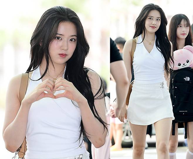 또, 안유진은 아이보리 미니스커트를 매치해 우아하고 세련된 분위기를 자랑했습니다.