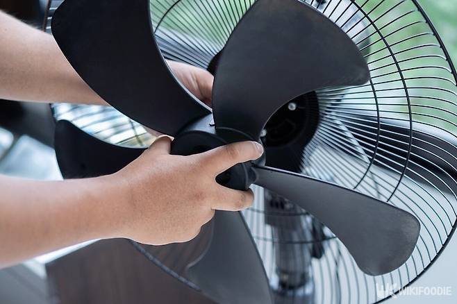 선풍기를 세척할 땐 전원을 반드시 뽑고, 본체는 물수건이나 알코올 티슈로 닦는 것이 안전하다. 날개와 그릴은 분리해서 미지근한 물에 중성세제를 풀고 세척하면 된다. 특히 날개 축 부위는 신경써서 닦아주도록 한다.