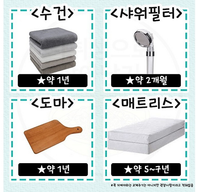 자취를 시작하면 모든 것을 스스로 관리해야 하기 때문에, 생활용품의 ‘교체 주기’를 아는 것은 매우 중요합니다.