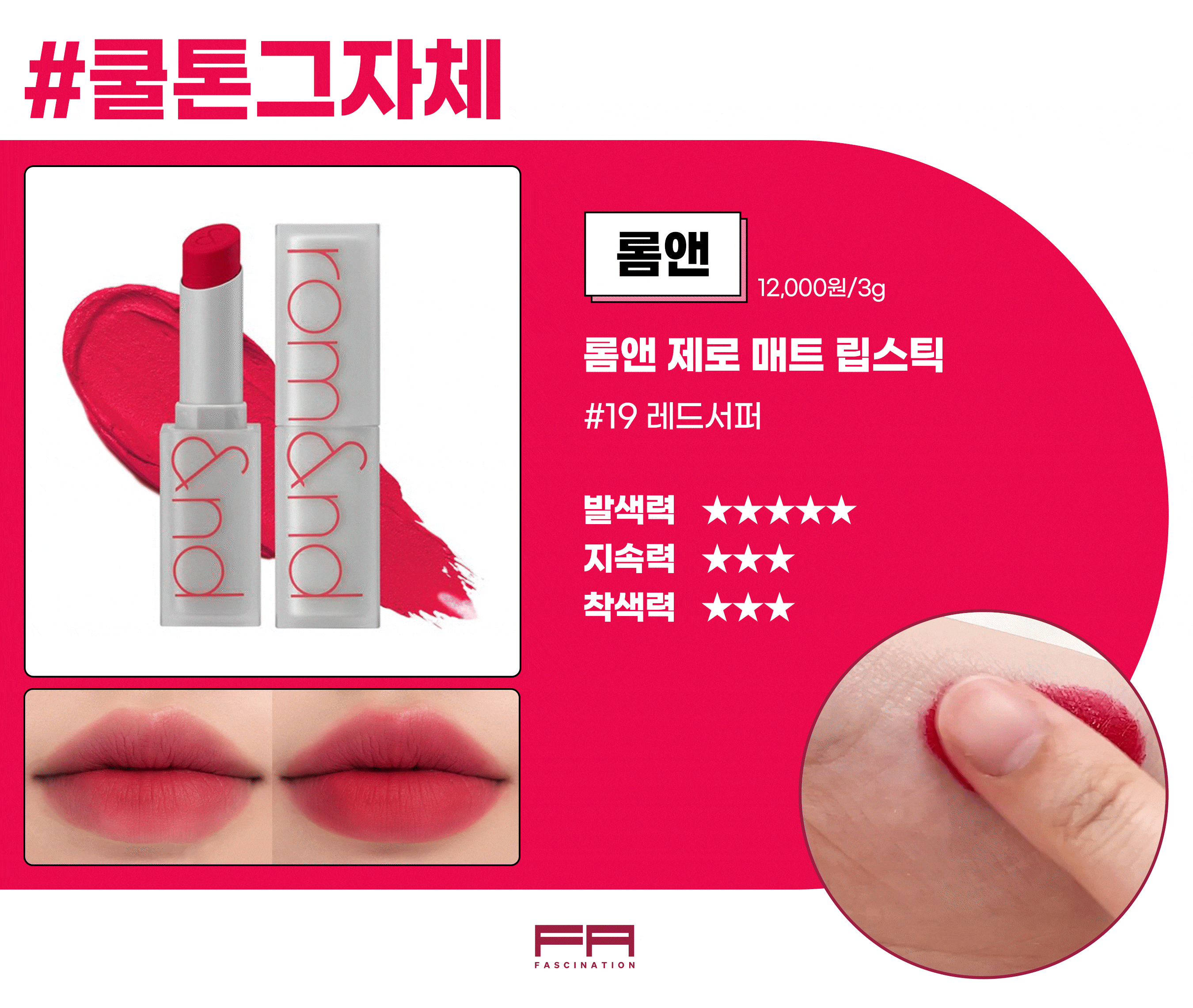 1. 롬앤 제로 매트 립스틱 19 레드 서퍼 / 3g / 12,000원