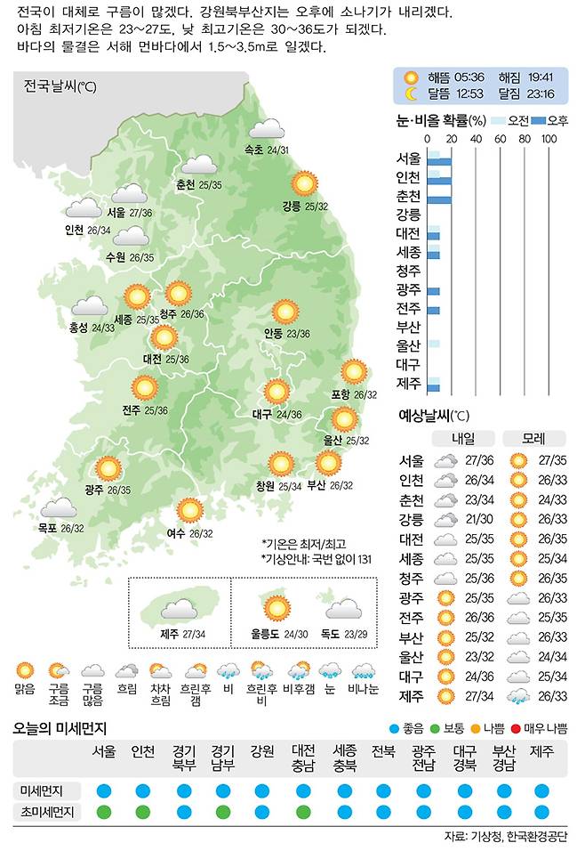 [1일의 날씨] 구름 낀 하늘에도 땡볕 '기세등등'