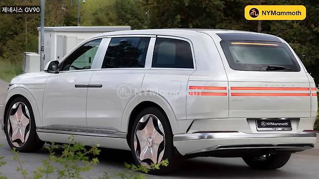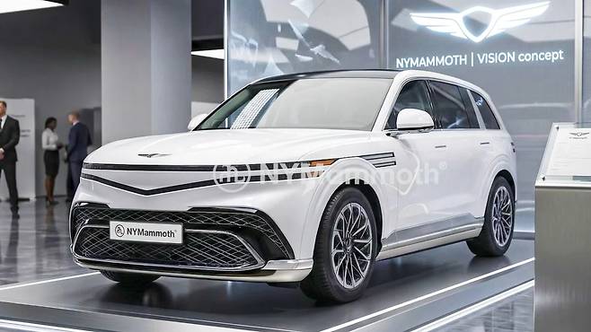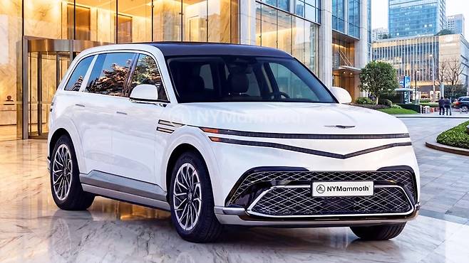GV90의 핵심은 제네시스가 강조해온 달 항아리 디자인 철학을 대형 SUV에 어떻게 풀어내느냐다. 예상도를 기준으로 보면 측면은 선을 덜어내고 면의 볼륨을 키우는 방식으로 존재감을 드러내며, 전면은 윙페이스 구성을 통해 더 웅장한 이미지를 노린다.