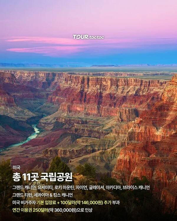 미국의 대표 국립공원 11곳은 외국인 대상 입장료에 100달러의 추가 요금을 부과합니다.