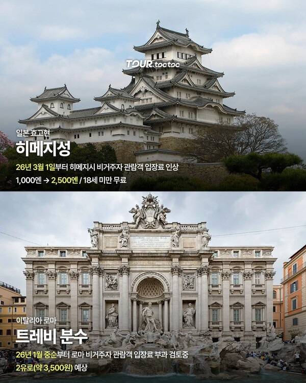 2026년에는 유럽부터 미국, 일본까지 주요 관광지들의 입장료와 관광세가 일제히 인상됩니다.