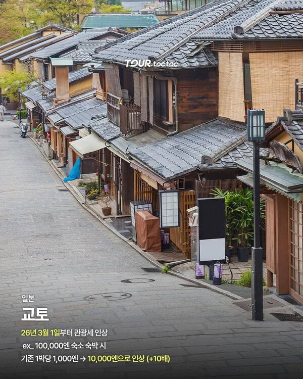 일본 교토시는 2026년부터 관광세를 10배 인상할 예정입니다.