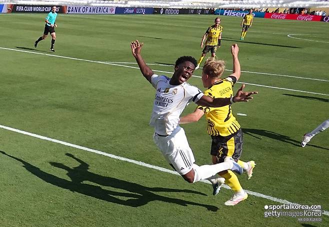 [SPORTALKOREA] 민진홍 기자= 맨체스터 유나이티드가 중원 재편을 본격적으로 준비하기 시작했다. 카세미루의 거취가 불확실한 상황에서, 스페인 현지 보도는 맨유가 레알 마드리드 핵심 미드필더 오렐리엥 추아메니를 차기 수비형 미드필더 1순위로 설정했다고 전했다. 그러나 1억 유로를 요구하는 레알 마드리드의 태도와 현재 구단 상황을 고려할 때, 이 이적 시나리오는 당분간 '꿈에 가깝다'는 평가가 따른다.