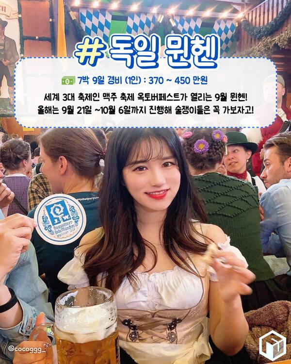 9월 독일 뮌헨에서는 세계 3대 축제이자 맥주 축제 옥토버페스트가 매년 개최됩니다. 2024 옥토버페스트는 9월 21일 시작으로 10월 6일까지 진행 예정입니다. 축제 기간 뮌헨은 그야말로 도시 전체가 축제분위기로 들썩이는데요.