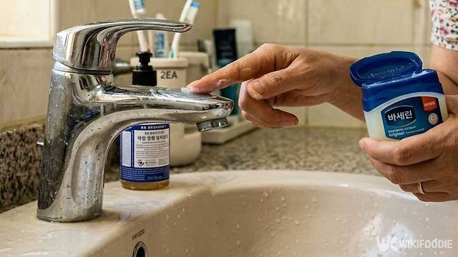 수도꼭지 표면에 바세린을 얇게 발라두면 표면에 보호막이 생긴다. 물방울이 오래 머물지 않고 흘러내리면서 미네랄이 붙는 속도가 늦어진다. 청소 간격을 줄이는 데 도움이 된다.