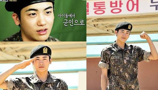 첫 입대 멤버였던 만큼 그의 군복 샷에도 이목이 쏠렸는데요.