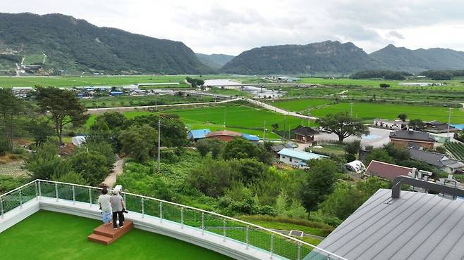 전시를 다 봤다고 해서 바로 떠나지 말고, 미술관 밖으로 나와 옥상에 올라보자. 채계산 출렁다리까지 보이는 숨은 전망 스폿이 나온다. 작품 속에서 만난 순창의 평화로운 풍경을 눈에 가득 담을 수 있다.