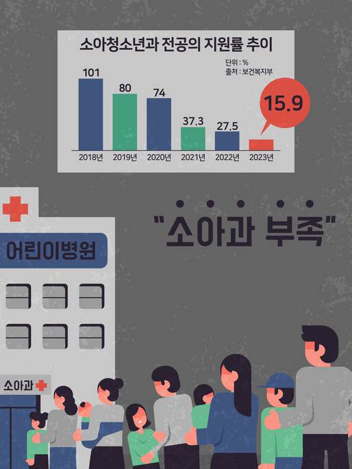 전남대병원이 지난달 26일 발표한 하반기 전공의 모집 합격자 명단에 따르면 레지던트 합격자(178명) 가운데 소아청소년과 레지던트 합격자는 1년차 1명, 2년차 1명, 4년차 1명으로 총 3명에 그쳤다. 이는 합격자 수가 1·2위인 내과(38명), 마취통증의학과(17명)과 격차가 처참한 수준이다. 전체 합격자 중 병리과(1명)에 이어 직업환경의학과(3명)과 함께 '합격자 최저 2위'라는 오명을 쓰게 됐다.