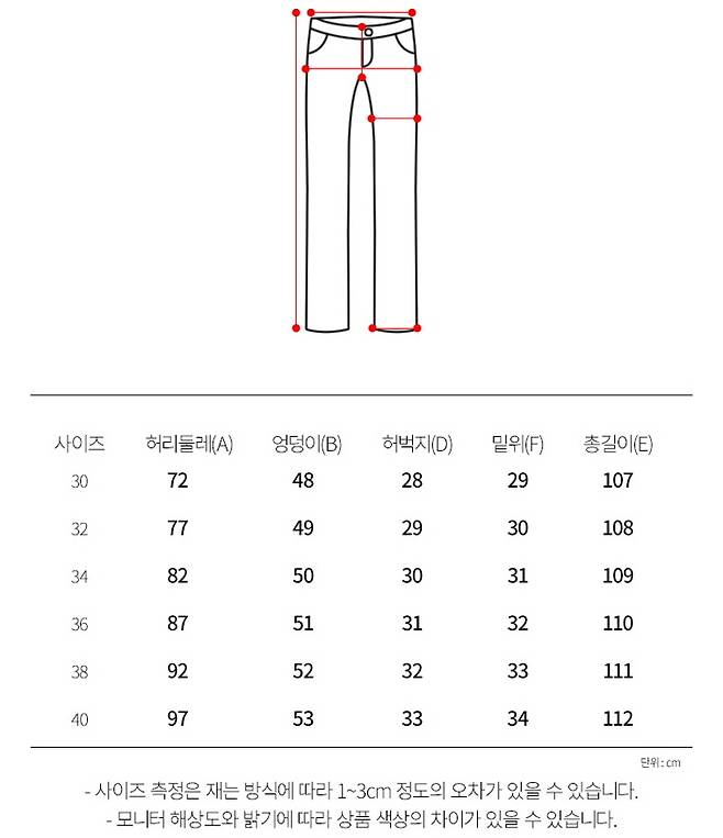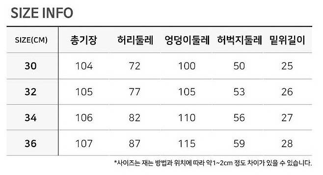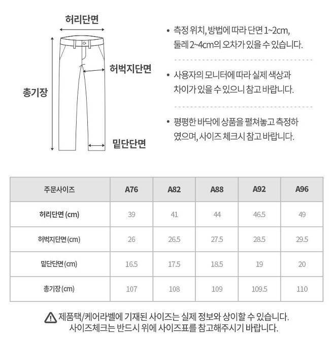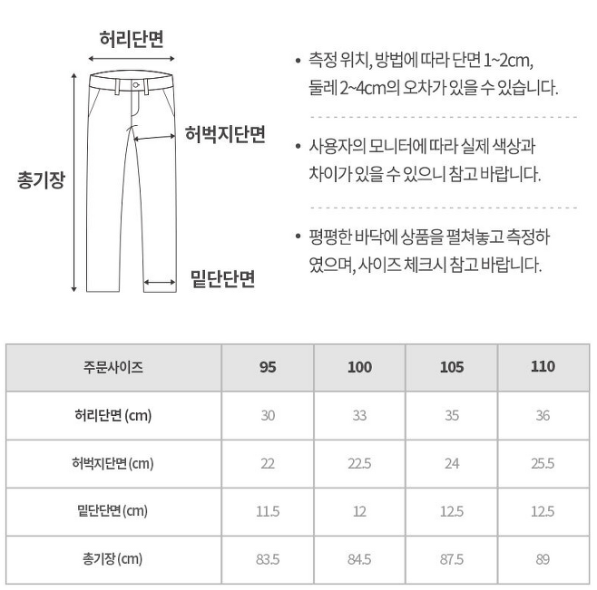 [남성 하의 사이즈 표]