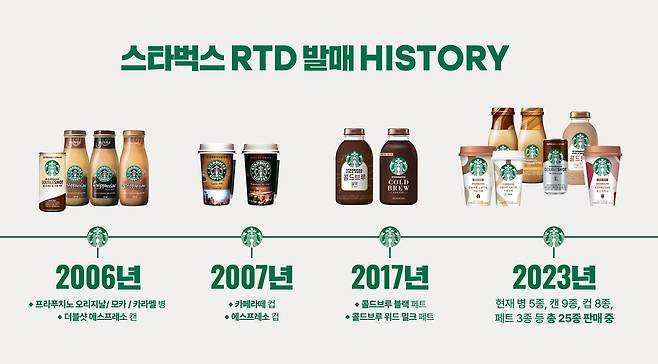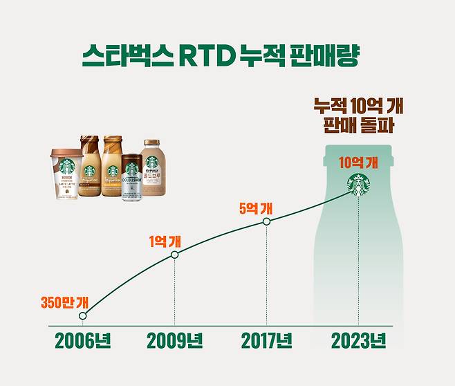 스타벅스 RTD 발매 당시 2006년 1700억 원 규모였던 국내 커피음료 시장은 매년 꾸준히 증가하여 2022년 1조 4500억 원으로 성장했다. 스타벅스 RTD 제품은 발매 첫 해인 2006년 350만 개가 판매된 이후 2022년에는 연간 1억개 이상 판매되며 지속 성장하고 있다.
