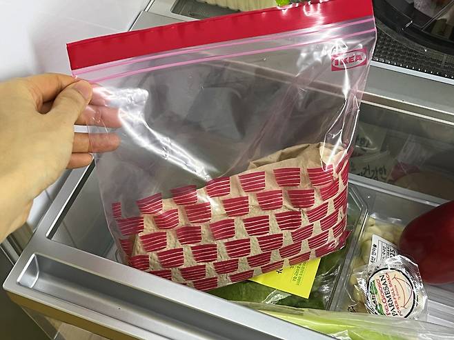 이렇게 키친타월이나 신문지에 감싼 부추는 그대로 지퍼백에 한 번 더 넣어 냉장고 야채칸에 보관합니다. 지퍼백은 냉장고 안의 차가운 냉기가 부추 잎에 직접 닿아 얼거나 마르는 것을 막아주는 보호막 역할을 합니다.