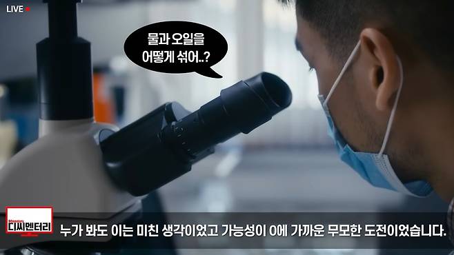 뿐만 아니라 바이오기술실험기관 편백수 제조 특허권자 화장품업 에멀전 기계 제조업체 등 모든 기관을 찾았으나 돌아온 대답은 불가능하다는 것이었습니다. 그러나 모든 관련 연구 논문과 기술을 찾아 헤맨 끝에 2018년 드디어 완벽히 물과 오일을 섞는 오일 수용화 기술을 완성시켰습니다. 얼마나 완벽했던지 실험에 참여했던 연구원들조차 혀를 내두를 정도였는데 분명 오일 성분이 있지만 물과 분자적으로 완벽히 섞여있음을 증명하는 성분 분석 데이터가 존재하니 눈으로 보고도 믿을 수 없었던 겁니다.