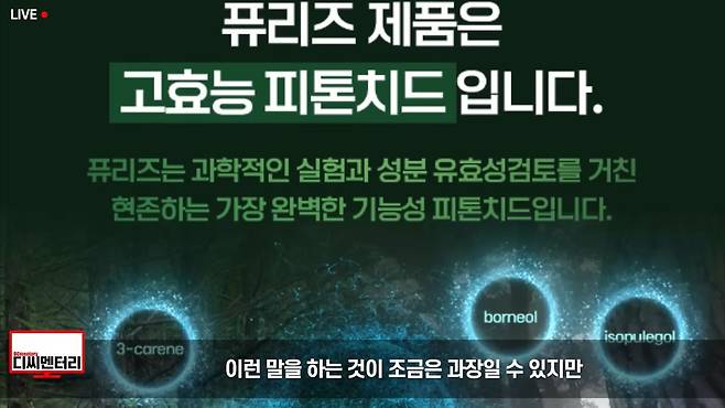 이 제품은 냄새를 잡는 탈취제도 아니고 냄새를 분사하는 방향제도 아닙니다. 두 역할을 동시에 수행하는 올인원 제품이죠. 천연 탈취제인 피톤치드에 천연 아로마 오일을 섞었으니 탈취제와 방향제 역할을 동시에 하는 겁니다. 단, 1의 화학물질도 넣지 않고 말이죠. 이 기술을 활용할 수 있는 산업군이 어마어마하게 많기 때문에 수많은 기업들의 러브콜이 쇄도했으나 전부 거절한 것도 온갖 성분 미달의 제품들이 장악한 이 피톤치드 시장을 제대로 안정화시키기 위함입니다. 그럼 실제로 이 제품은 다른 제품들과 다를까요?