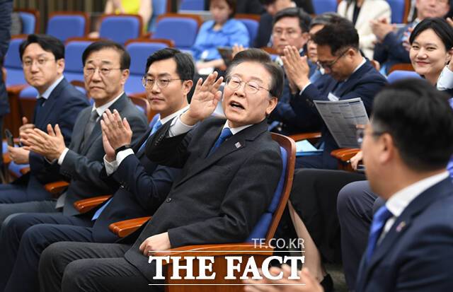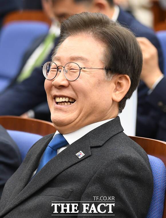 이재명, 박찬대의 '거룩한 농담'에 '박장대소' [TF사진관]