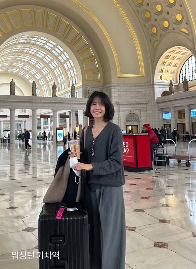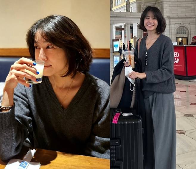 공개한 사진에서 김지호는 LA에서 버지니어, 워싱턴, 뉴욕으로 이어지는 여행 케줄 속에 마치 동네 마실을 나온 듯한 와이드 핏 팬츠에 브이넥 그레이 니트 스웨터를 걸친 캐주얼한 꾸안꾸룩으로 편안하면서도 캐주얼한 여행 스타일을 선보였다.